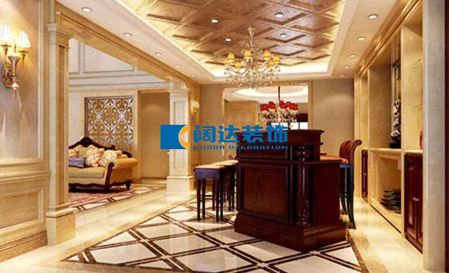 歐式風格裝修以其典雅高貴的氣質為主要特色,各個空間采用歐式吊頂及石膏線進行分割和裝飾,既統一又有區別,地面采用瓷磚鋪貼,精心設計的花紋顯示了歐式設計的高雅與品質,無論是材料的選擇、家居的造型還是房間的配飾,都透露出尊貴與典雅,歐式布藝沙發,華麗的吊燈,歐式家具即成了充滿歐式風格大廳的視覺焦點,優美的線條配以曲線的造型裝飾令整個空間華貴而雅致。同風格案例:更多>>