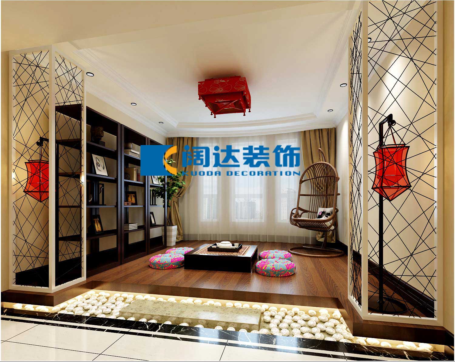 以現代的裝飾手法和家具,結合古典中式的裝飾元素,來呈現亦古亦今的空間氛圍。中式風格的古色古香與現代風格的簡單素雅自然銜接,