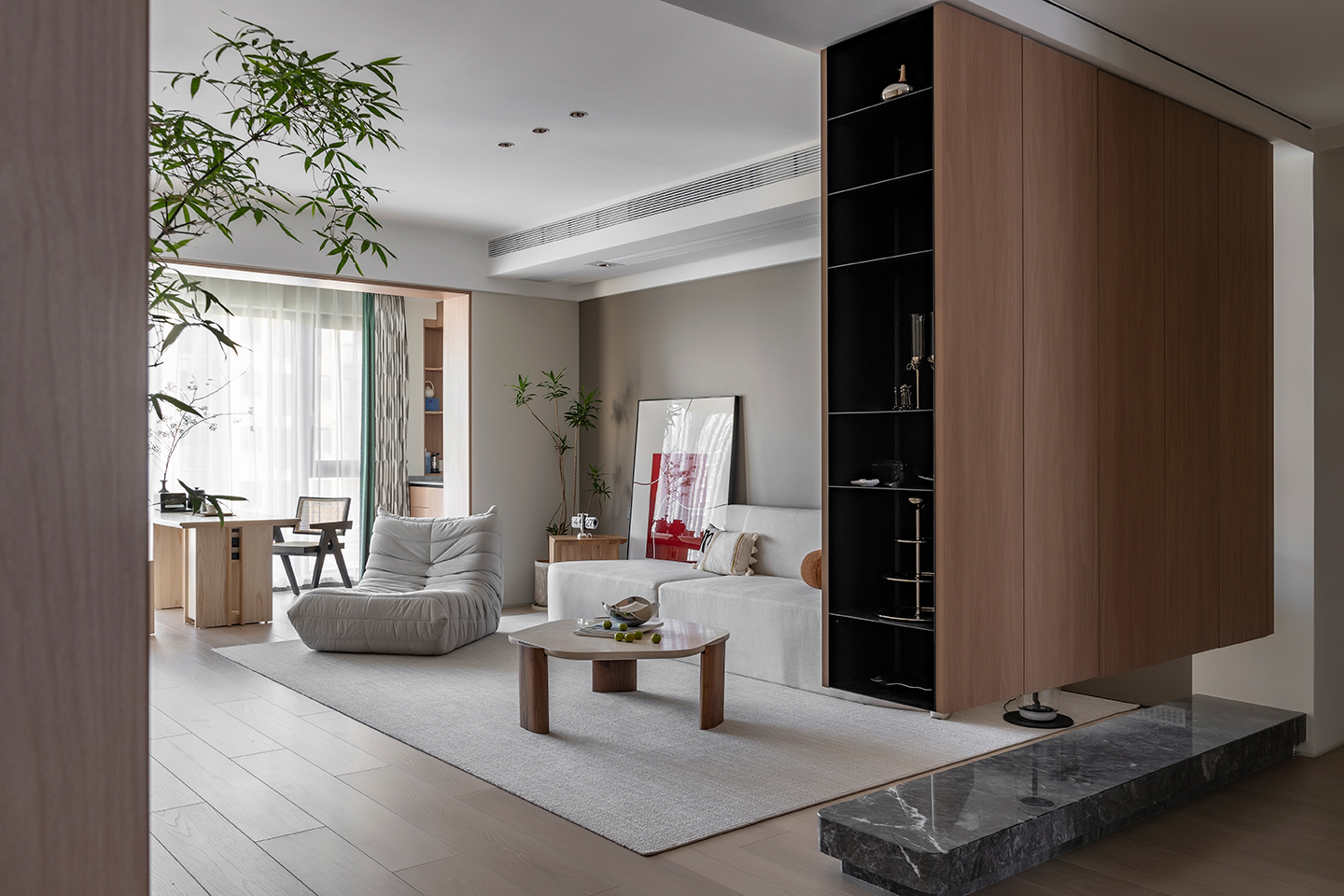 在空間設計上,本案運用了與大自然有聯系的材質,結合了當代產品工藝組合,創造一個都市森林,四季如晨的景象。