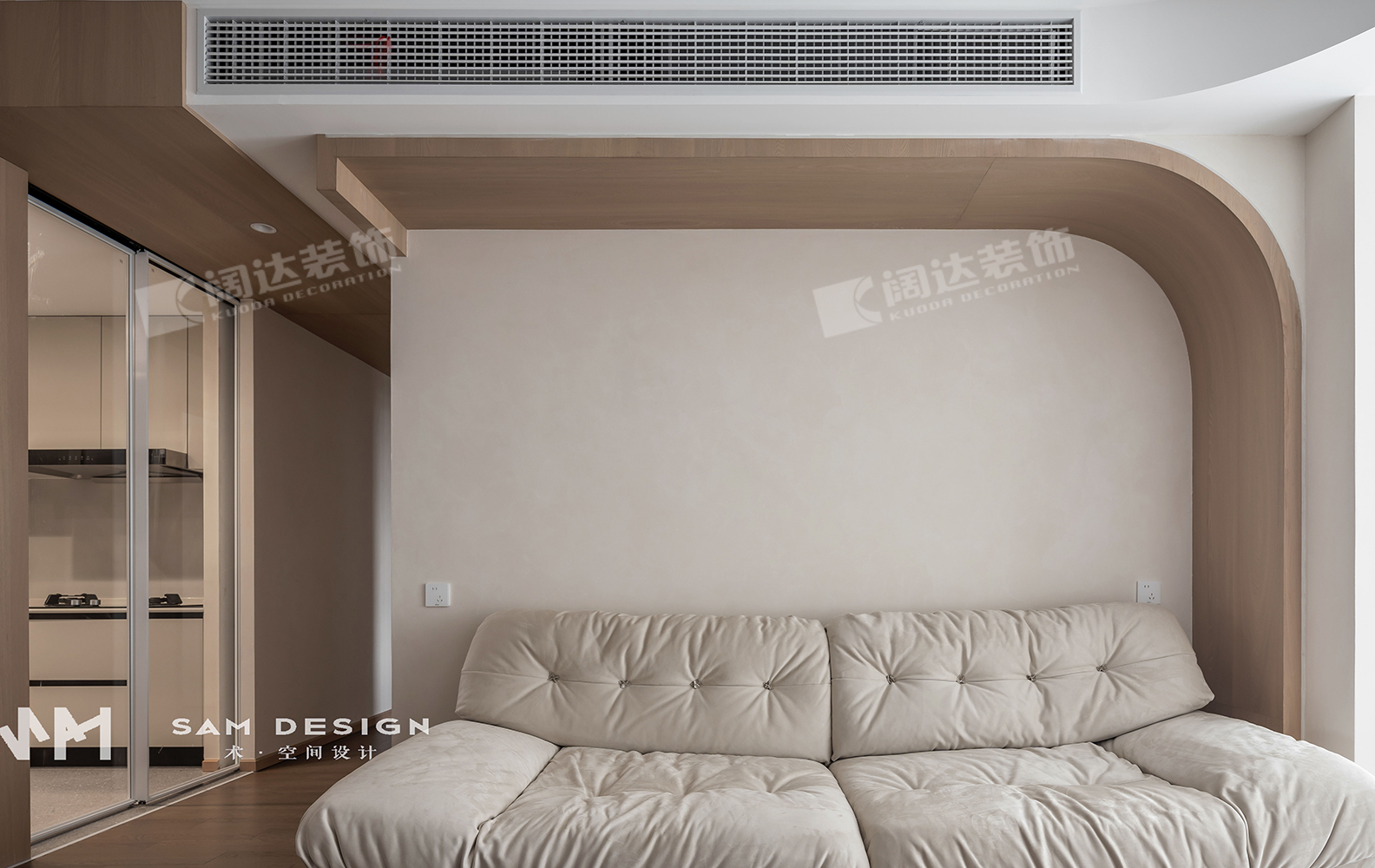 拆除了門廳左側(cè)墻壁,使得客廳、餐廳、廚房融為一體,很好地提升了空間感,入門后有寬敞的視野,不會被局限。