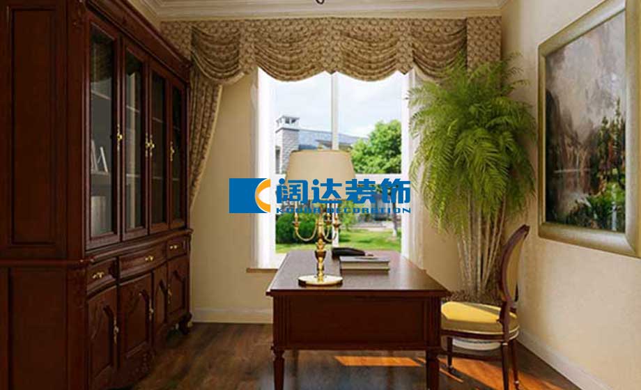 書房:簡歐的石膏線條勾勒出書房的典雅,配以歐式的書柜和書桌,使書房散發出寧靜舒適氣息。