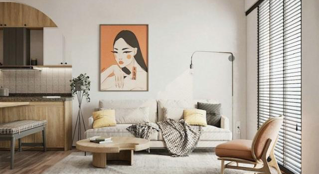 還有一種視覺上的御寒方式,那就是暖色系色調。用暖色調打造的家,會讓人不由自主地放松,倍感溫馨,原木色地板搭配米色系墻面,有一種說不出道不明的溫柔氣質~
