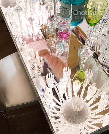 編輯點(diǎn)評:鏡面水晶餐桌的美也毫不遜色。晶瑩剔透的真實(shí)光感映襯著絢麗多彩的光芒,讓人過目不忘,心生一片對美的熾烈熱愛。
